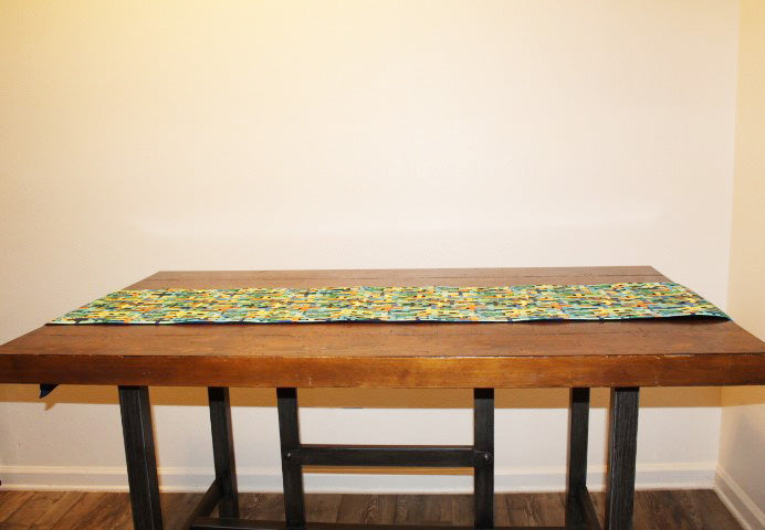 Handmade Table Runner. Reversable with blue backing.